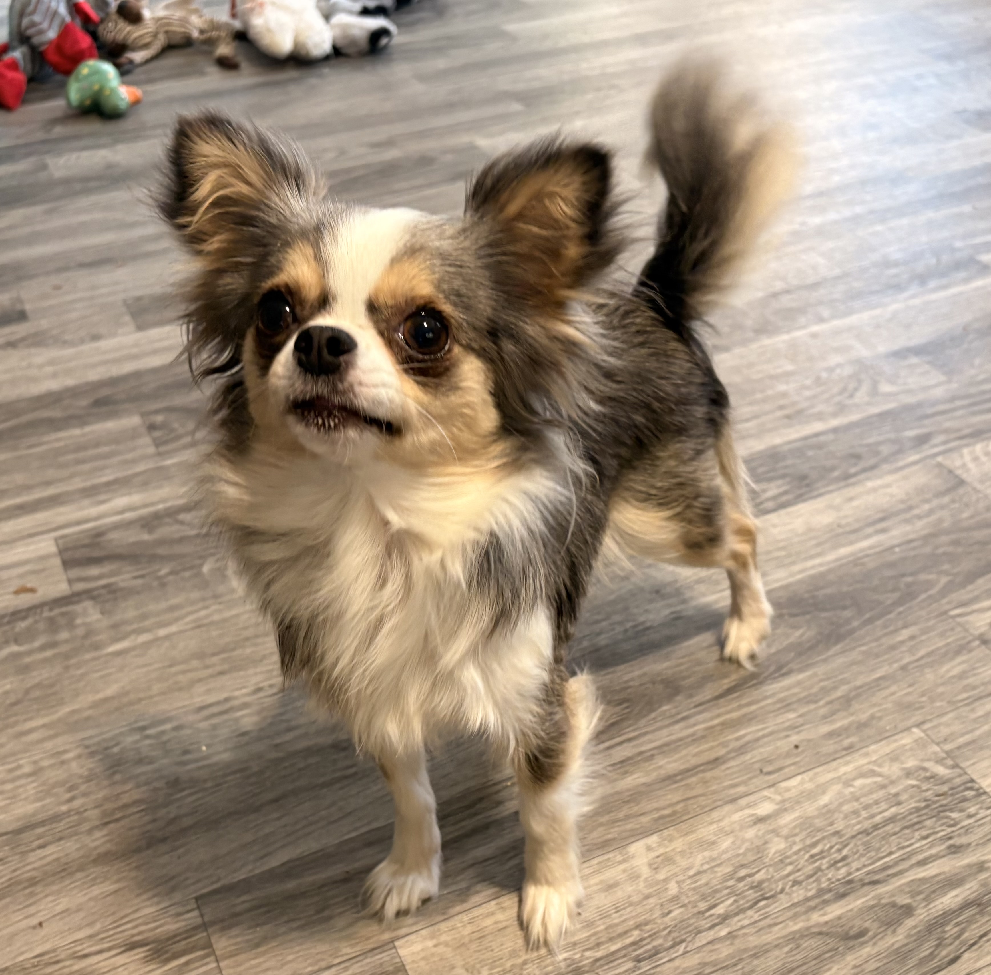 Ivy, daughter of AKC CH Flutter and AKC GRAND CHAMPION Stuffins. Born 5/19/23. 5 lbs. Vet checked and genetic tested.