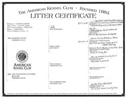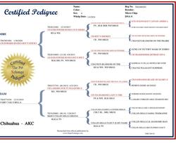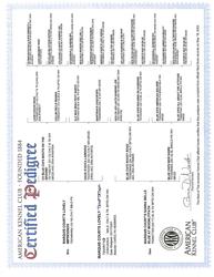 PEDIGREE REBA, BLUE TRI MERLE. SIRE IS A GRAND CH, GETTING PEDIGREES UPDATED.